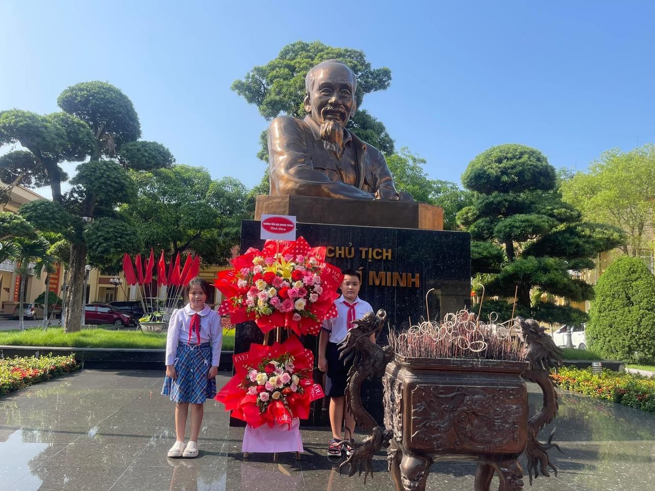 🌸🌸❤️Nhân dịp kỷ niệm 134 năm ngày sinh Chủ tịch Hồ Chí Minh (19/5/1890-19/5/2024). Chiều ngày 17/5 Liên đội trường TH Quang Trung tổ chức cho các em học sinh tiêu biểu đến dâng hoa báo công Báo cáo Kết quả học tập và rèn luyện trong năm học 2023-2024 tại trụ sở UBND quận Kiến An.