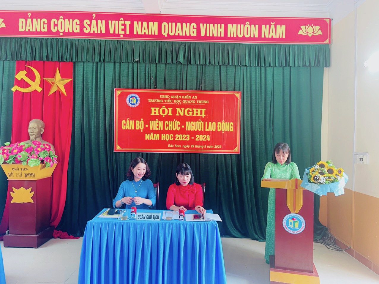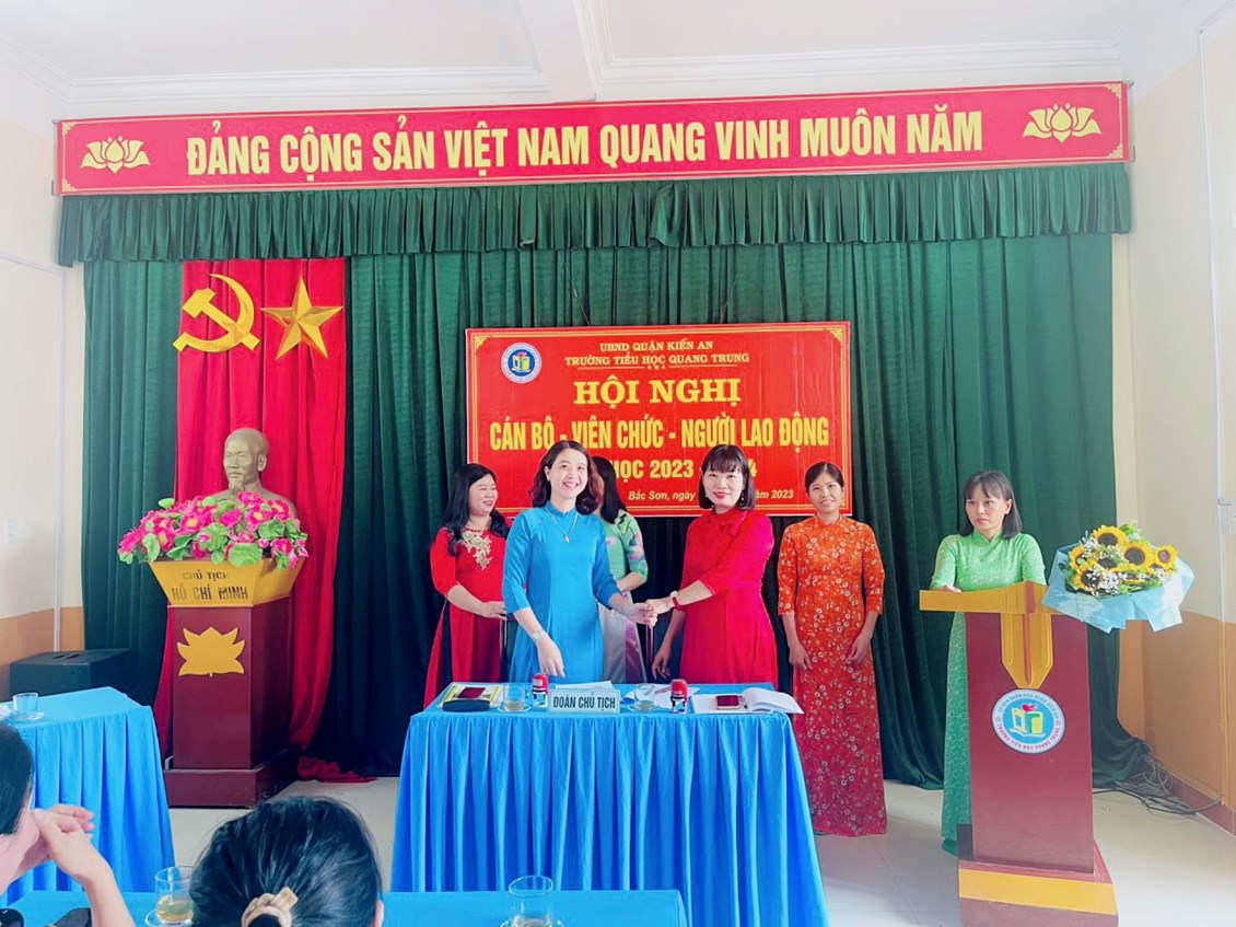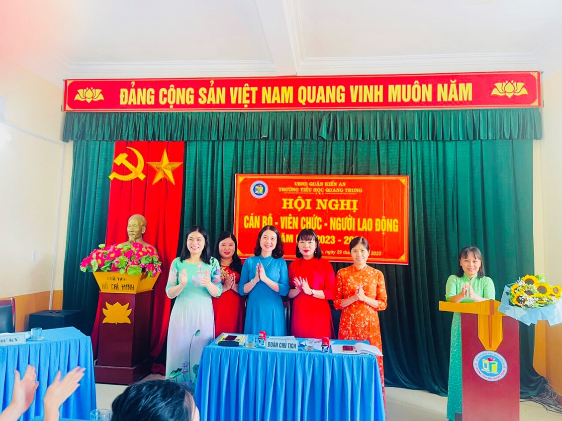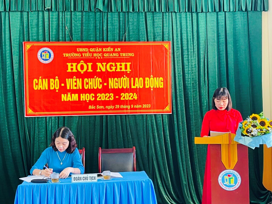 Sáng ngày 29/9/2023 trường Tiểu học Quang Trung long trọng tổ chức Hội nghị Cán bộ, viên chức và người lao động nhằm đánh giá kết quả thực hiện Nghị quyết Hội nghị CB, VC - NLĐ năm học 2022-2023 và xây dựng các kế hoạch, nhiệm vụ, giải pháp, chỉ tiêu năm học 2023-2024.