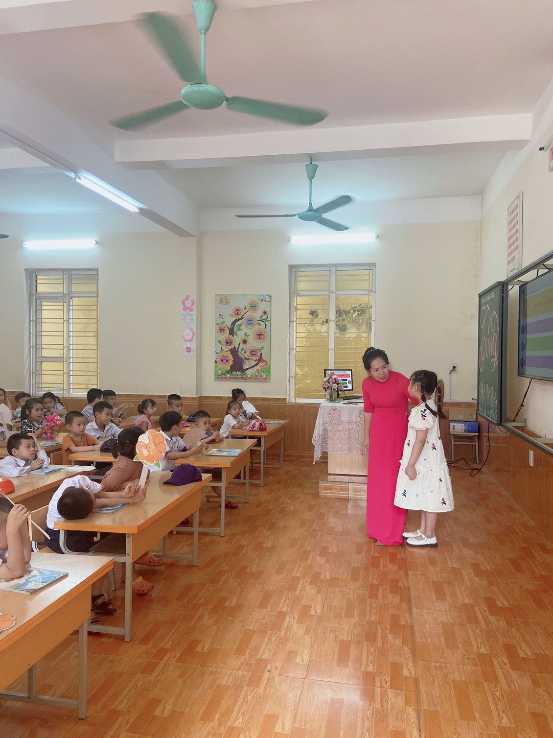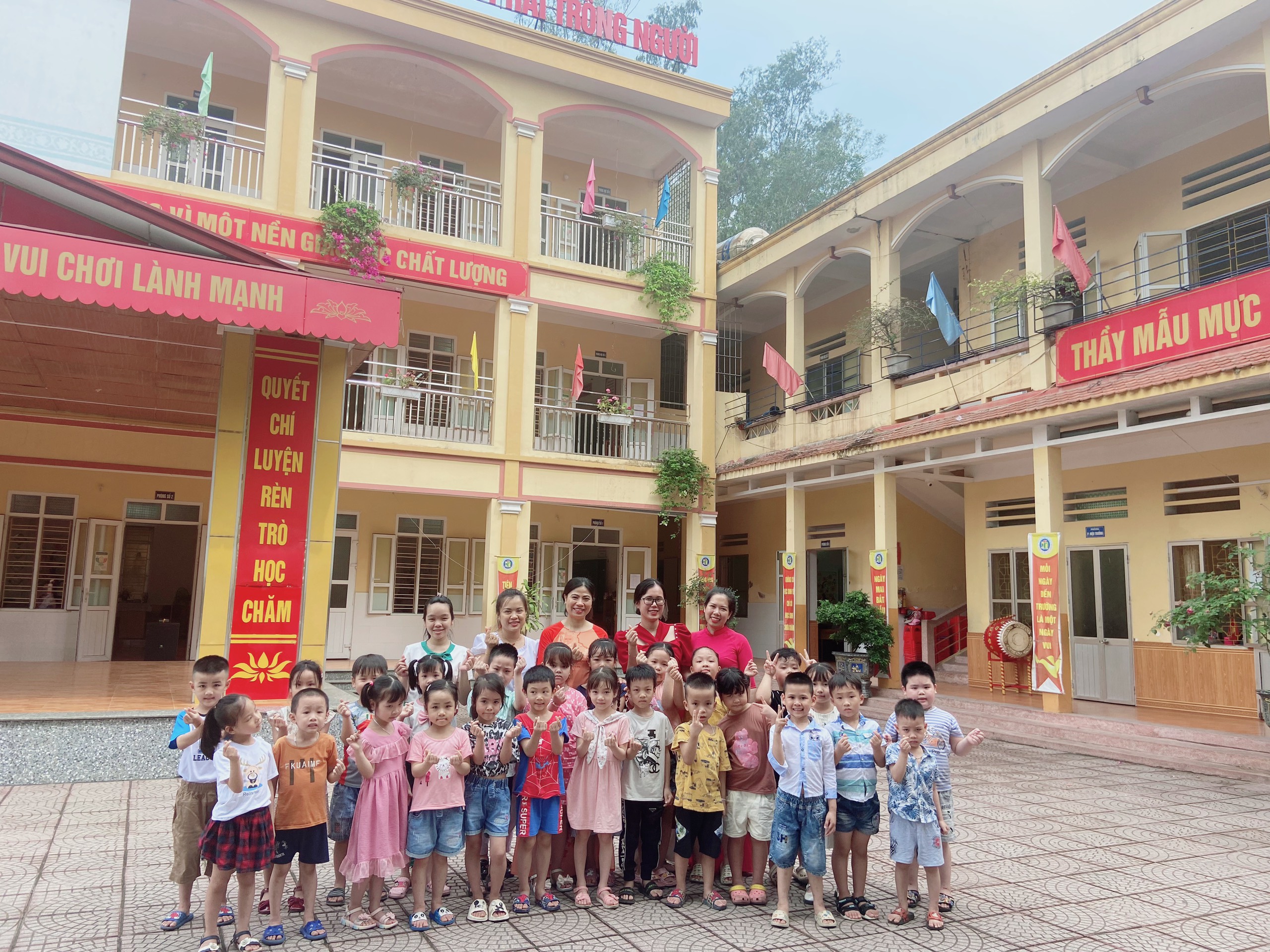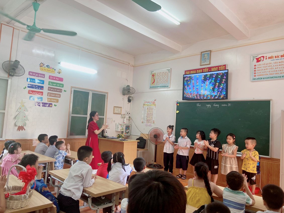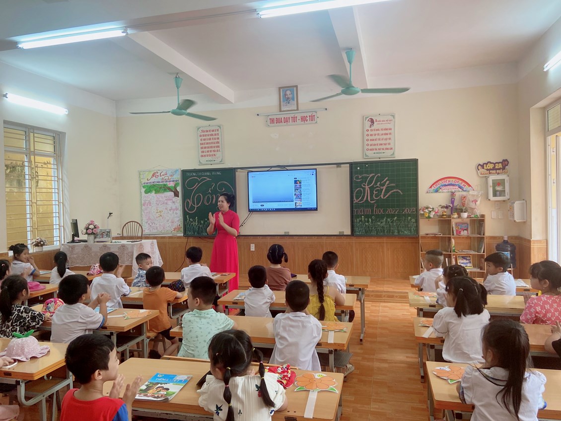 Sáng này 24 tháng 5 trường tiểu học Quang Trung chào đón hơn 50 em học sinh trường mầm non phương thanh.