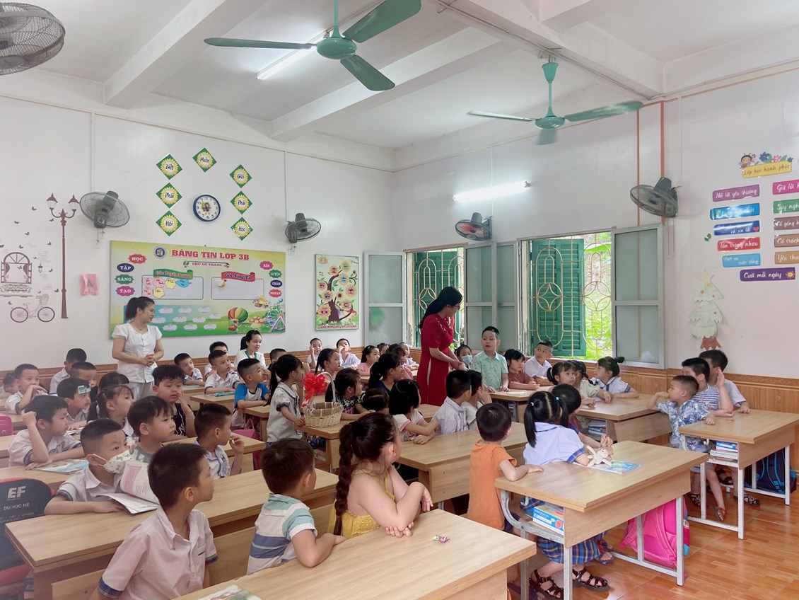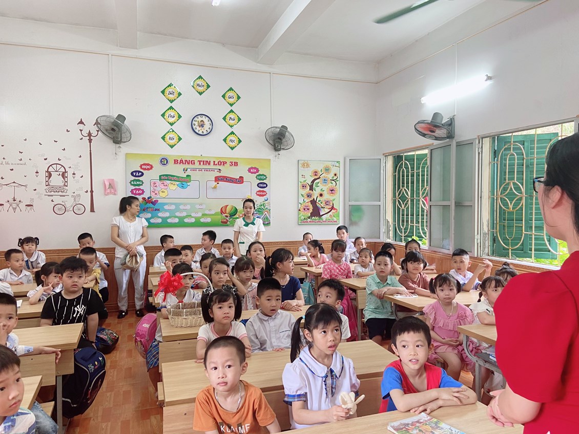 các em còn được tham gia các tiết học trải nghiệm cùng các anh chị lớp 1 và được tham quan các phòng chức năng, phòng hiệu bộ, phòng thư viện…