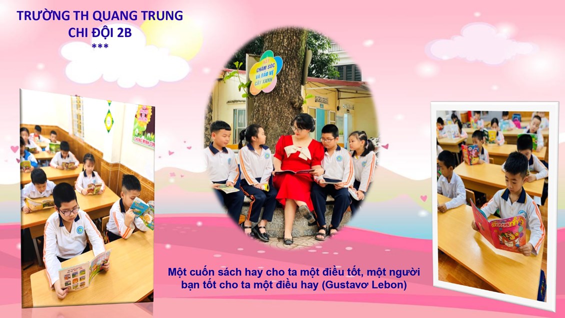 Đã từ lâu phong trào đọc sách của các bạn nhỏ Liên đội trường Tiểu học Quang Trung đã trở lên rất quen thuộc. Các bạn ấy đọc mọi lúc, mọi nơi. Những cuốn sách của lớp, của trường đều được các bạn khai thác triệt để. Học được những bài học bổ ích từ những cuố n sách đã giúp ích cho các bạn trong học tập cũng như trong cuộc sống.