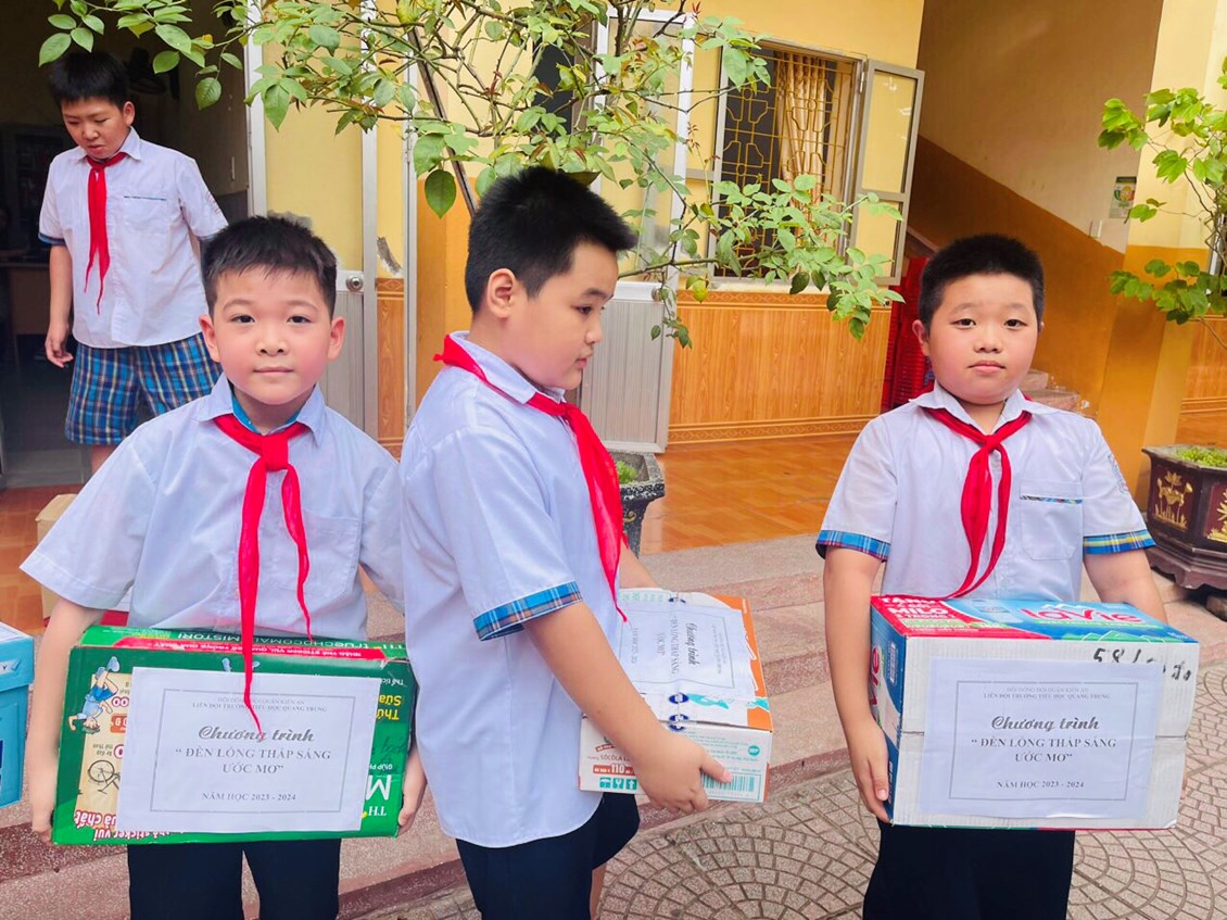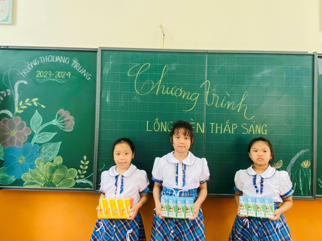 Thực hiện Kế hoạch đội, Liên đội trường tiểu học Quang Trung đã phát động phong trào ”Một ly sữa- Triệu trái tim ấm áp” trong chương trình ”Lồng đèn thắp sáng ước mơ.”