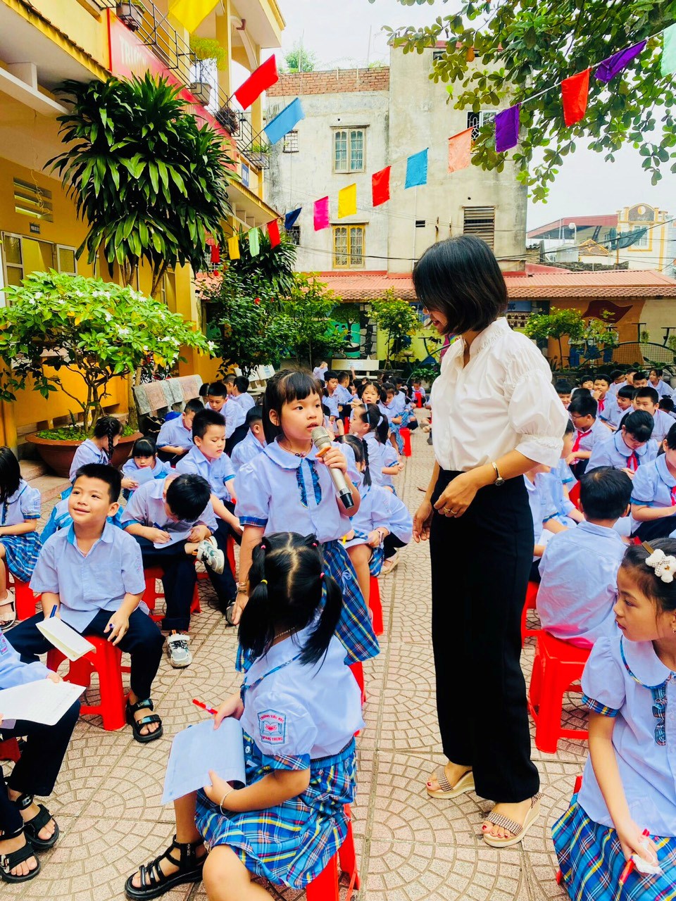 Sáng ngày 16/10 Liên đội trường Tiểu học Quang Trung tổ chức buổi hoạt động ngoại khoá cho học sinh toàn trường với chủ đề “Lời con muốn nói” nhân dịp kỷ niệm 93 năm ngày thành lập Hội Liên hiệp phụ nữ Việt Nam.