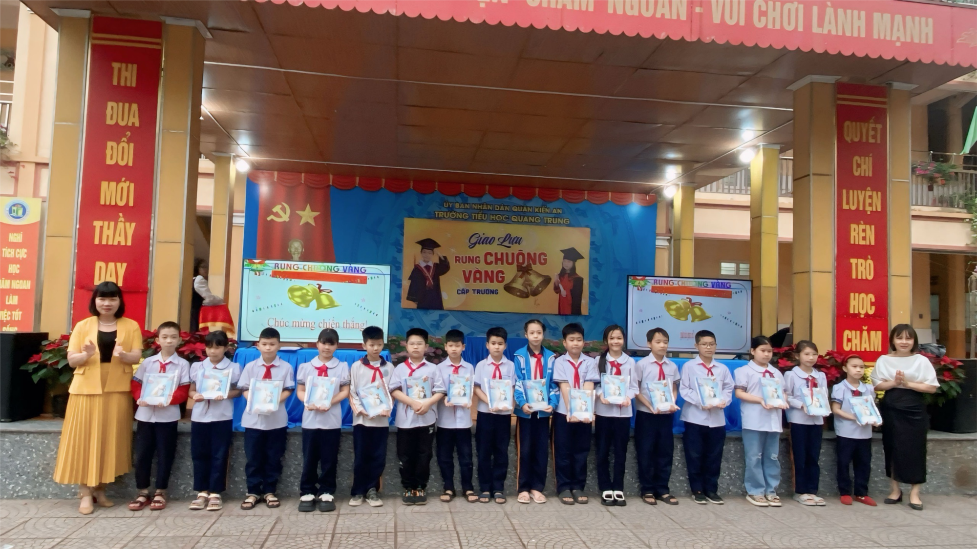 Căn cứ kế hoạch nhiệm vụ năm học 2023-2024 của Trường Tiểu học Quang Trung. Hôm nay, ngày 22 tháng 02 năm 2024, Trường Tiểu học Quang Trung tổ chức Cuộc thi "Rung chuông vàng" cấp trường năm học 2023-2024. Cuộc thi là sân chơi giúp cho học sinh được thể hiện các khả năng hiểu biết của bản thân, có cơ hội được giao lưu, mở rộng vốn từ, phát triển khả năng biểu đạt và rèn các kỹ năng hoạt động tập thể, ý thức tổ chức kỷ luật cho học sinh khi tham gia, giúp học sinh mạnh dạn, tự tin trong giao tiếp. Nâng cao hiệu quả công tác tuyên truyền, phối kết hợp giữa gia đình nhà trường và xã hội trong quá trình giáo dục học sinh tạo điều kiện tốt nhất cho học sinh. Thông qua Cuộc thi nhằm đánh giá việc thực hiện nâng cao chất lượng giáo dục phát triển ngôn ngữ, phát triển nhận thức và củng cố nâng cao chất lượng toàn diện cho học sinh theo chương trình GDPT2018.