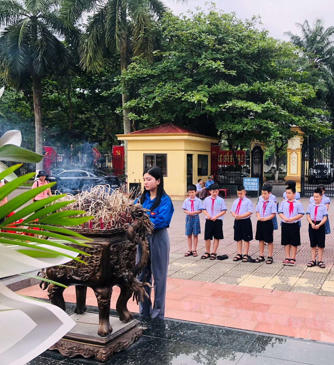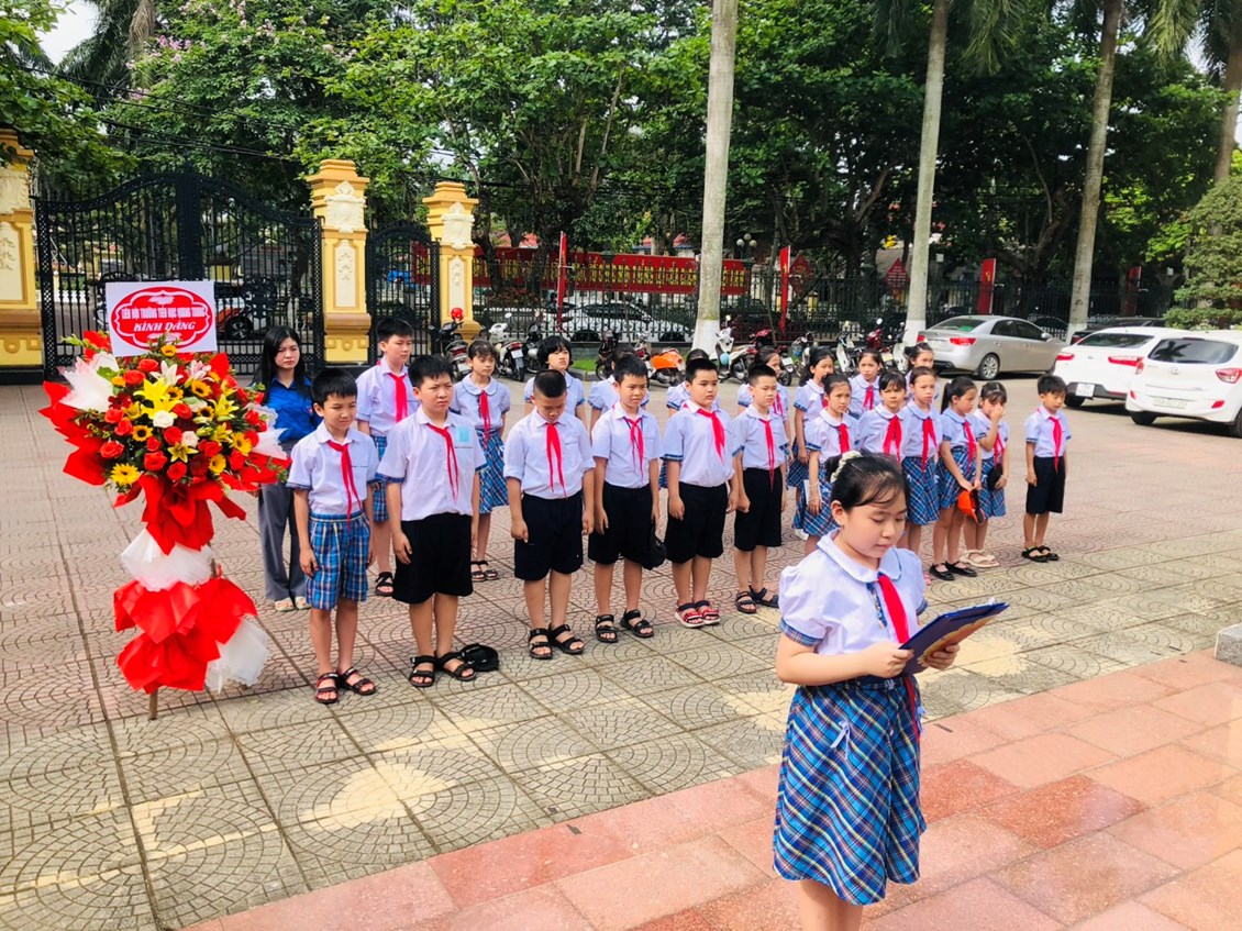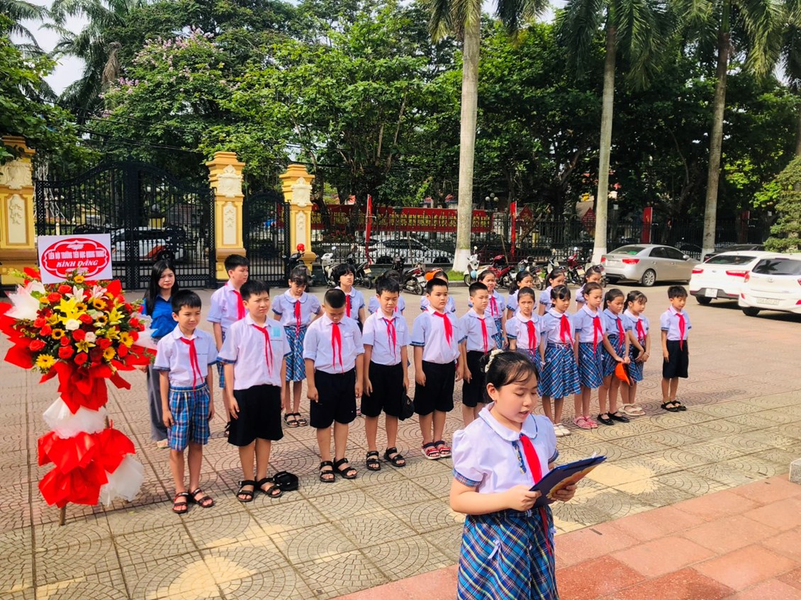 Trong không khí cả nước đang hướng về kỷ niệm các ngày lễ lớn; Kỷ niệm 48 năm Ngày Giải phóng Miền Nam, thống nhất đất nước (30/04/1975 - 30/04/2023), kỷ niệm 68 năm Ngày giải phóng Hải Phòng (13/5/1955 - 13/5/2023); Kỷ niệm 133 năm Ngày sinh Chủ tịch Hồ Chí Minh (19/5/1890-19/5/2023). Hôm nay chúng cháu đại diện hơn 370 bạn học sinh của trường Tiểu học Quang Trung có mặt tại đây để tưởng nhớ và tỏ lòng biết ơn vô hạn đối với Bác Hồ kính yêu, người Anh hùng kiệt xuất của dân tộc Việt Nam, danh nhân văn hóa thế giới và kính dâng lên Bác những thành tích mà Nhà trường đã nỗ lực phấn đấu và đạt được trong thời gian qua.