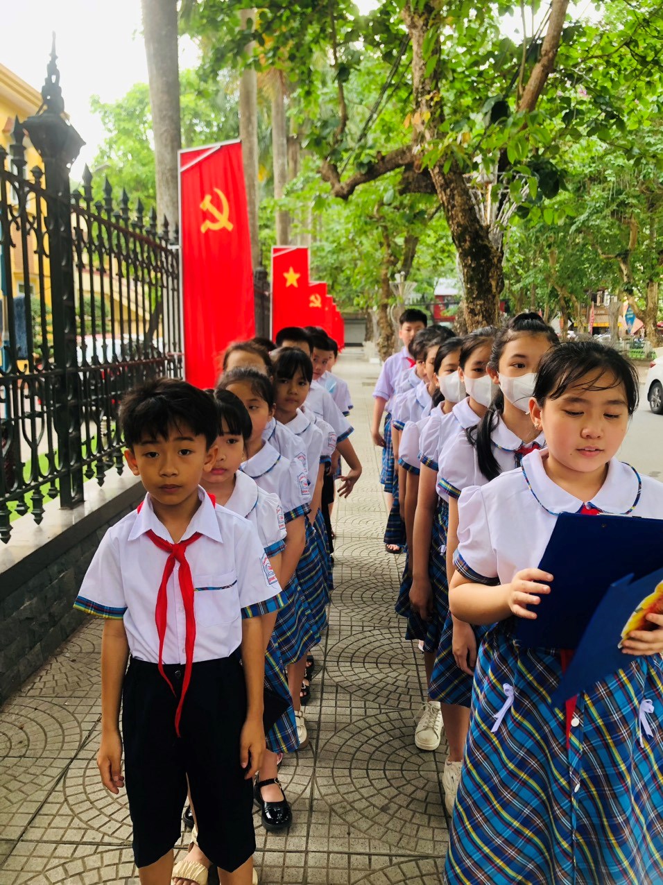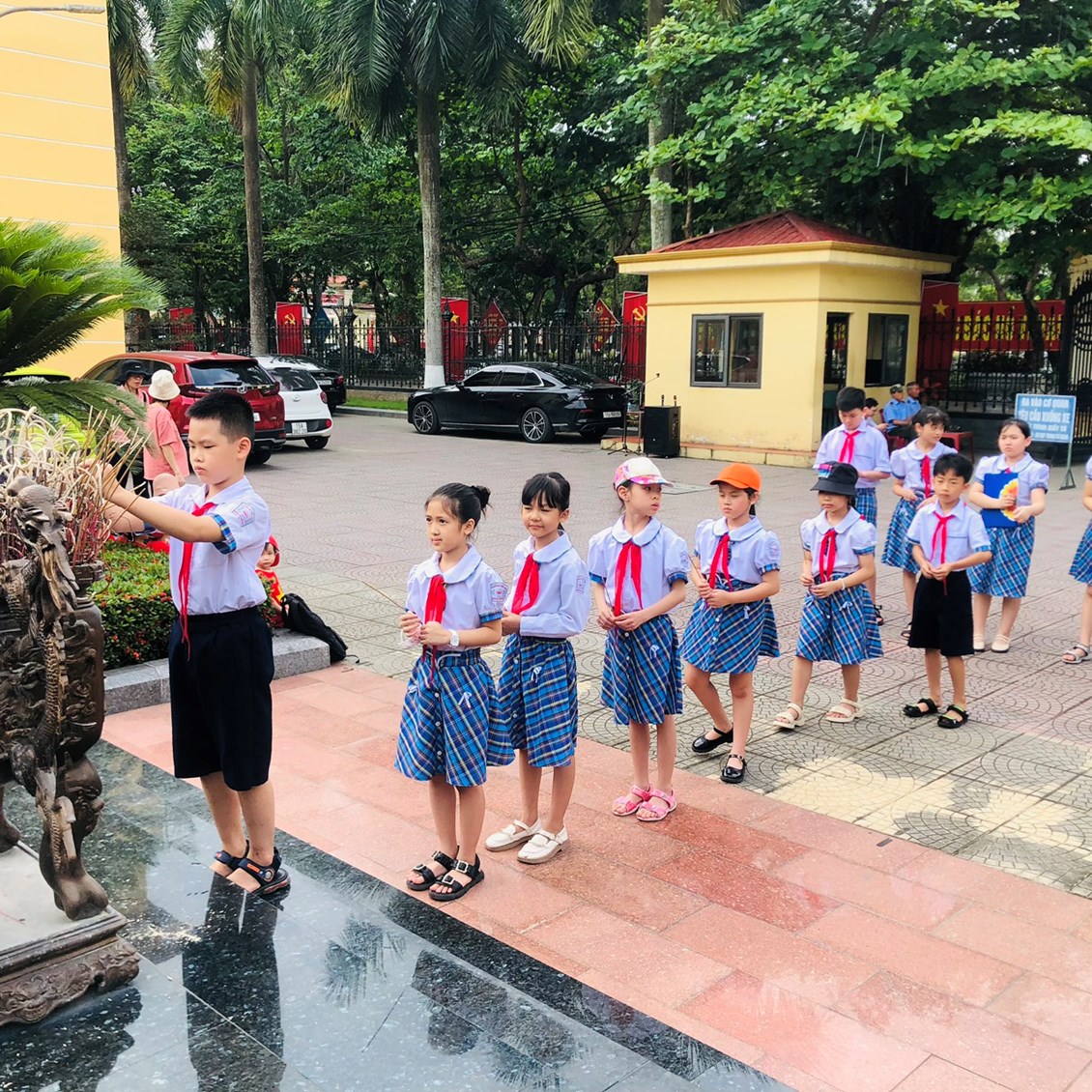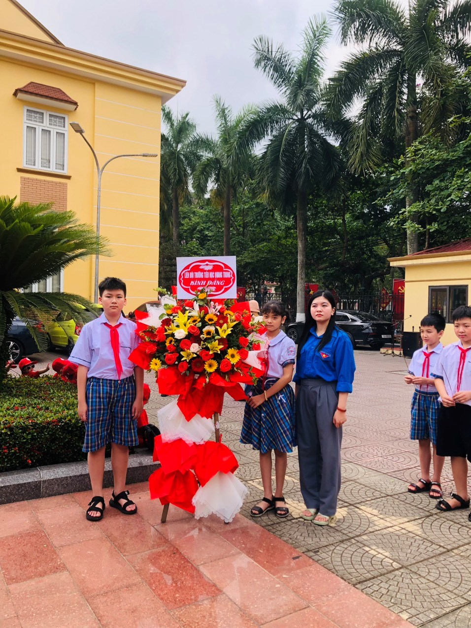Hôm nay chúng cháu đứng tại nơi đây dâng hoa báo công với Bác. Chúng cháu mong được Bác ghi nhận những thành tích này để có thêm nguồn động lực về tinh thần. Trước anh linh Người, thầy và trò trường Tiểu học Quang Trung xin hứa tiếp tục phấn đấu dạy tốt học tốt, thấm nhuần lời dạy của Người: