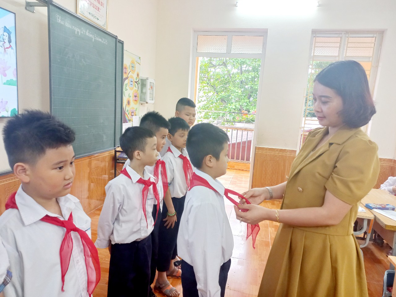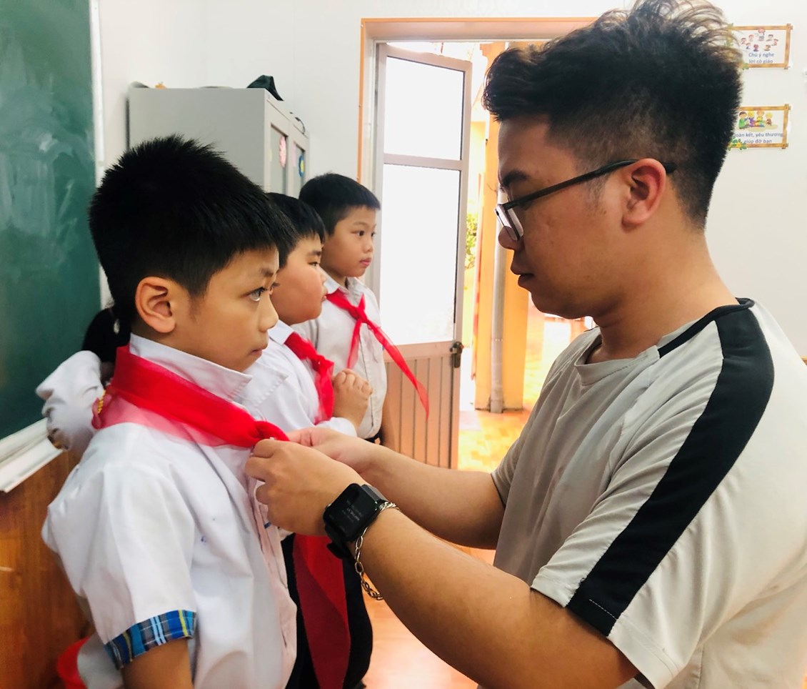Được đứng trong hàng ngũ Đội Thiếu niên Tiền phong Hồ Chí Minh là vinh dự, niềm tự hào đối với các em. Vì từ hôm nay, các em được mang trên vai chiếc khăn đỏ thắm màu cờ Tổ Quốc. Màu khăn đỏ như nhắc nhở các em phải phấn đấu vươn lên không ngừng để trở thành Đội viên tốt, xứng đáng là con ngoan trò giỏi - cháu ngoan Bác Hồ. Giây phút thiêng liêng này sẽ là kỷ niệm đẹp của tuổi học trò của các em./.
