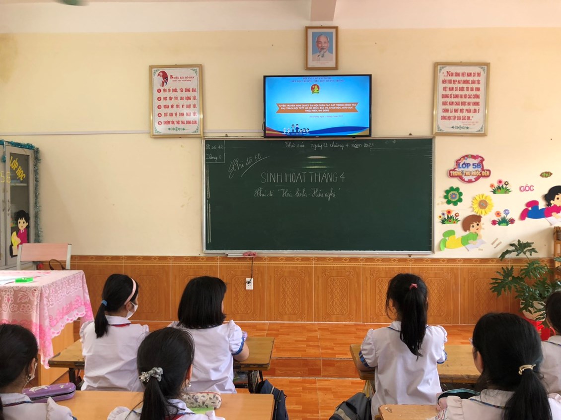 Nhằm nâng cao hiểu biết về vấn đề "Hoà bình và hữu nghị”, ý nghĩa của hoà bình và hữu nghị đối với cuộc sống của nhân loại nói chung và đối với trẻ em thực hiện các quyền của mình nói riêng. Trong tháng 4, các chi đội trường TH Quang Trung đã có các buổi sinh hoạt lớp theo chủ đề tháng. Nội dung buổi sinh hoạt nhằm giúp các em học sinh biết yêu hoà bình, ghét bạo lực, chiến tranh, biết thông cảm với nhân dân và trẻ em ở các nước có chiến tranh, tôn trọng ý kiến quan điểm của bạn bè. Biết trình bày ý kiến, quan điểm của mình, biết phân tích các sự kiện ảnh hưởng đến hoà bình và hữu nghị, biết tuyên truyền và vận động, biết đoàn kết chia xẻ, biết hợp tác với bạn bè tạo bầu không khí hoà bình và hữu nghị.