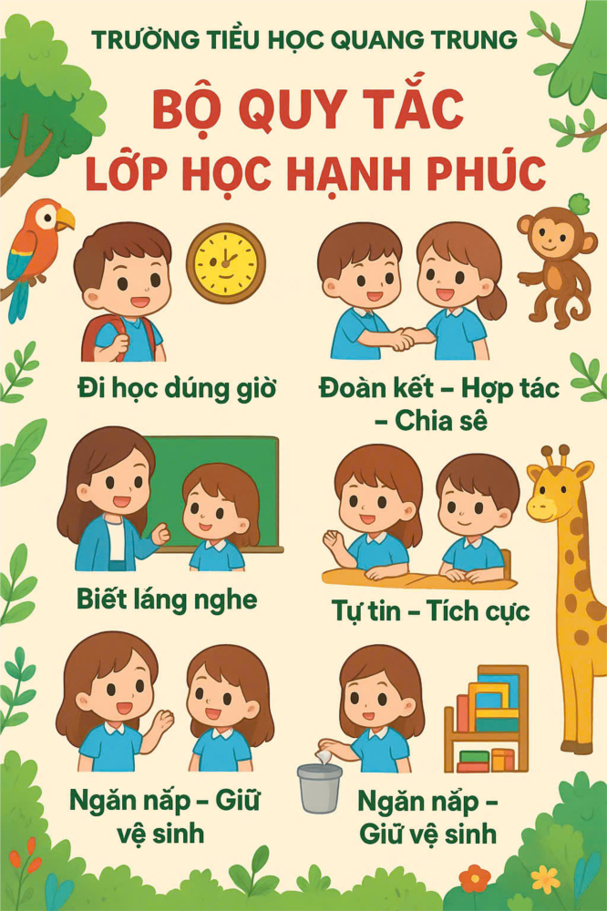 📚 Tại Tiểu học Quang Trung, chúng ta cùng ghi nhớ 10 quy tắc vàng sau: