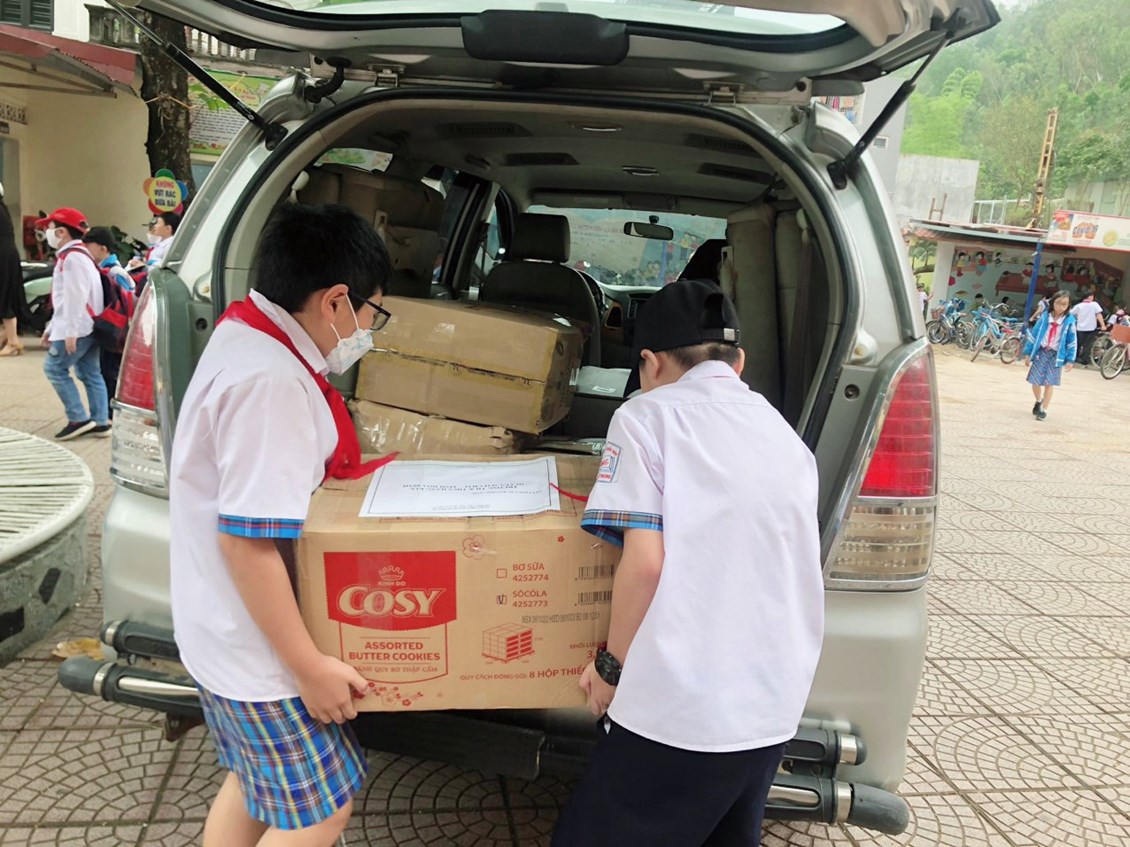Nhà trường đã quyên góp được 694 quyển vở, 162 quyển truyện; 520 thước kẻ, bút chì, bút mực, hộp bút , 24 chiếc cặp sách, 25 áo mưa, 15 đôi giày, 1200 kem bôi muỗi, 12 hộp bánh, 48 hộp dầu gội cùng nhiều đồ dùng học tập khác.