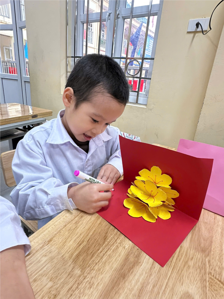 🥰🥰🥰Với đôi tay nhỏ xinh và sự sáng tạo dễ thương, mỗi bạn đã tự thiết kế cho mình một tấm thiệp đầy màu sắc: