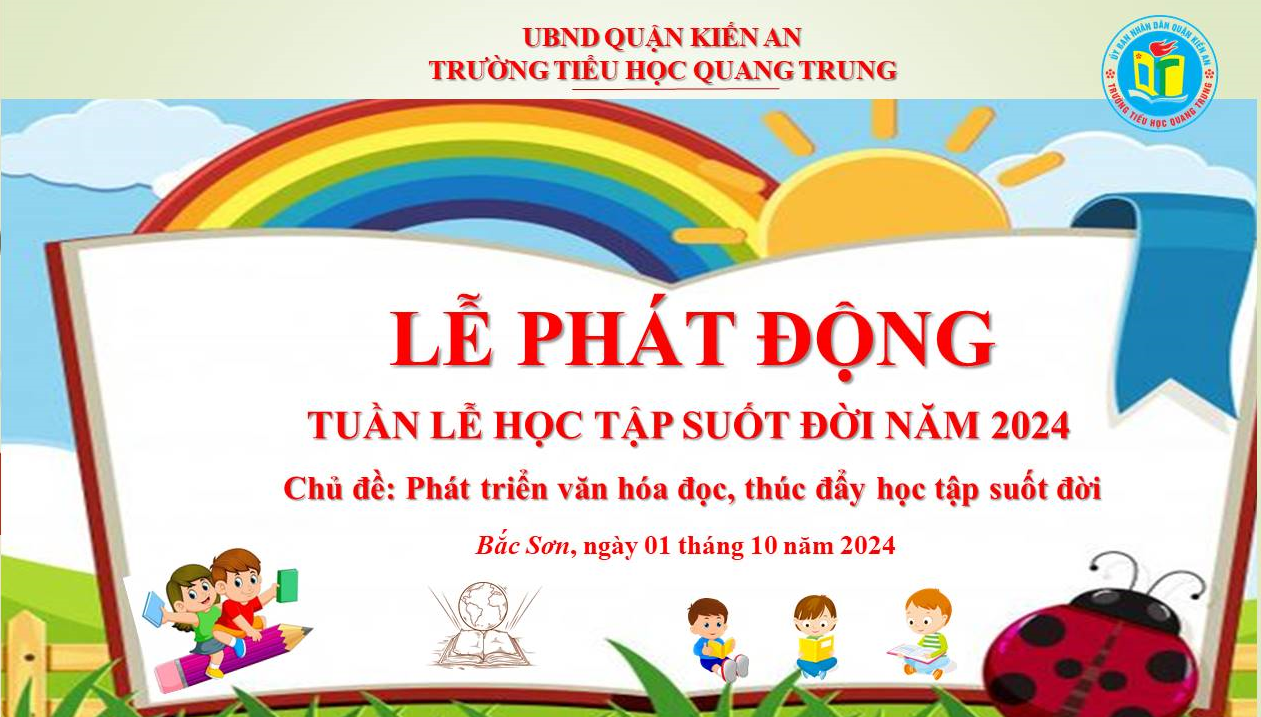 Sáng 1/10/2024, trường TH Quang Trung tổ chức Lễ phát động Tuần lễ học tập suốt đời năm 2024 với chủ đề “Phát triển văn hóa đọc, thúc đẩy học tập suốt đời”.