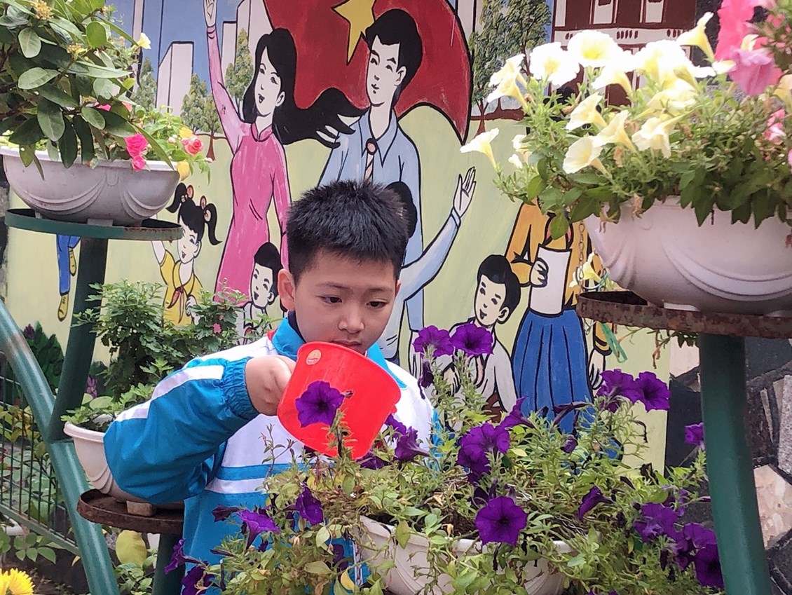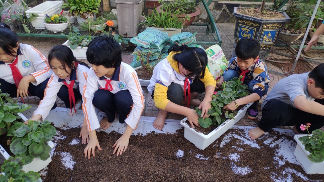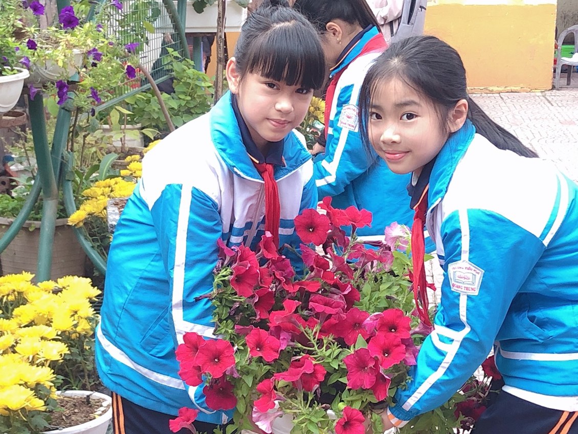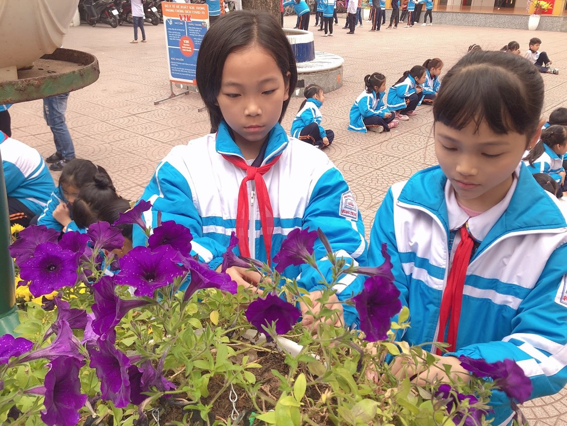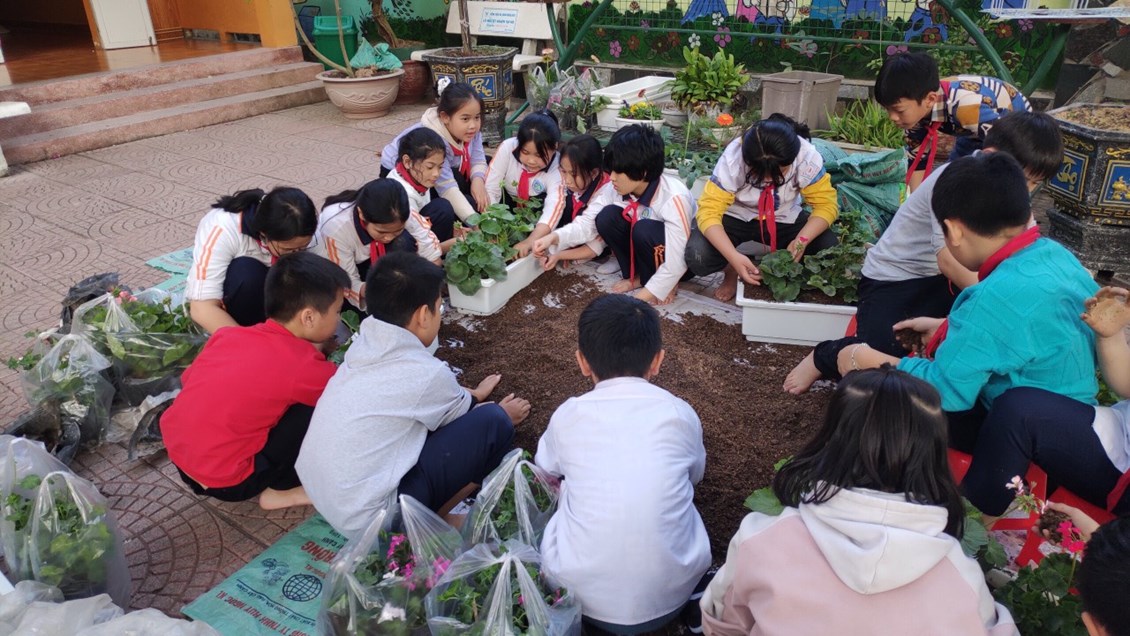 Với sự nhiệt tình chung tay của cán bộ giáo viên cùng các bậc phụ huynh, khuôn viên trường như được mặc thêm áo mới, hoa thi đua khoe sắc, rực rỡ ngát hương. Sau khi triển khai cuộc phát động: Nhà trường đã trồng được 28 chậu hoa trong khuôn viên trường, bón phân, thêm đất màu vào các bồn hoa, cây cảnh trong trường. Hiện nay trong khuôn viên trường đã được trồng rất nhiều các loại hoa, cây cảnh góp phần đưa khuân viên nhà trường thêm xanh, sạch ,đẹp.