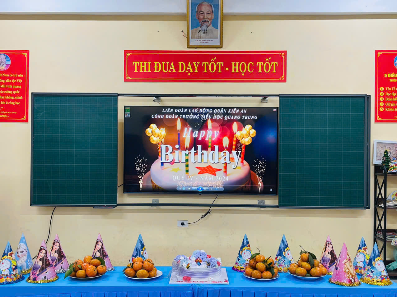 Thực hiện Kế hoạch của Công đoàn nhà trường, chiều ngày 27/12/2024 Công đoàn trường Tiều học Quang Trung tổ chức sinh nhật quý IV cho đoàn viên công đoàn. Đại diện BCHCĐ nhà trường, đồng chí Đinh Thị Mỵ Thu – Chủ tịch Công đoàn gửi đến các đồng chí có ngày sinh nhật trong tháng 10,11,12 những lời chúc tốt đẹp nhất, chúc các đồng chí có thật nhiều sức khỏe, bình an, thành công trong công việc, hạnh phúc trong cuộc sống.