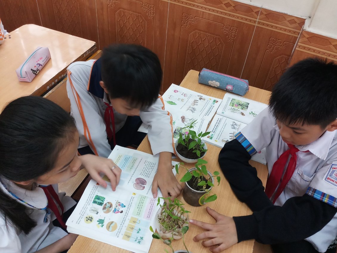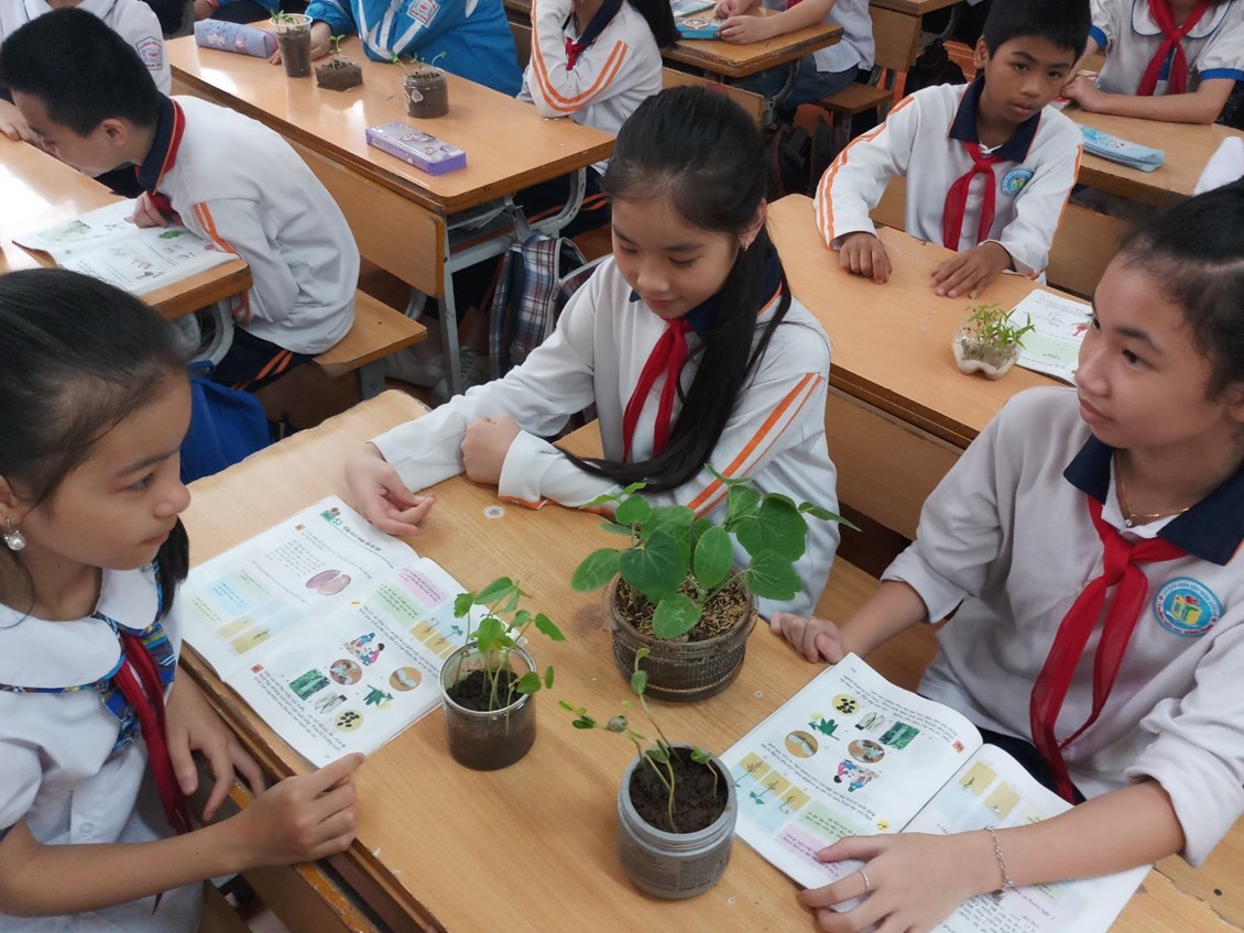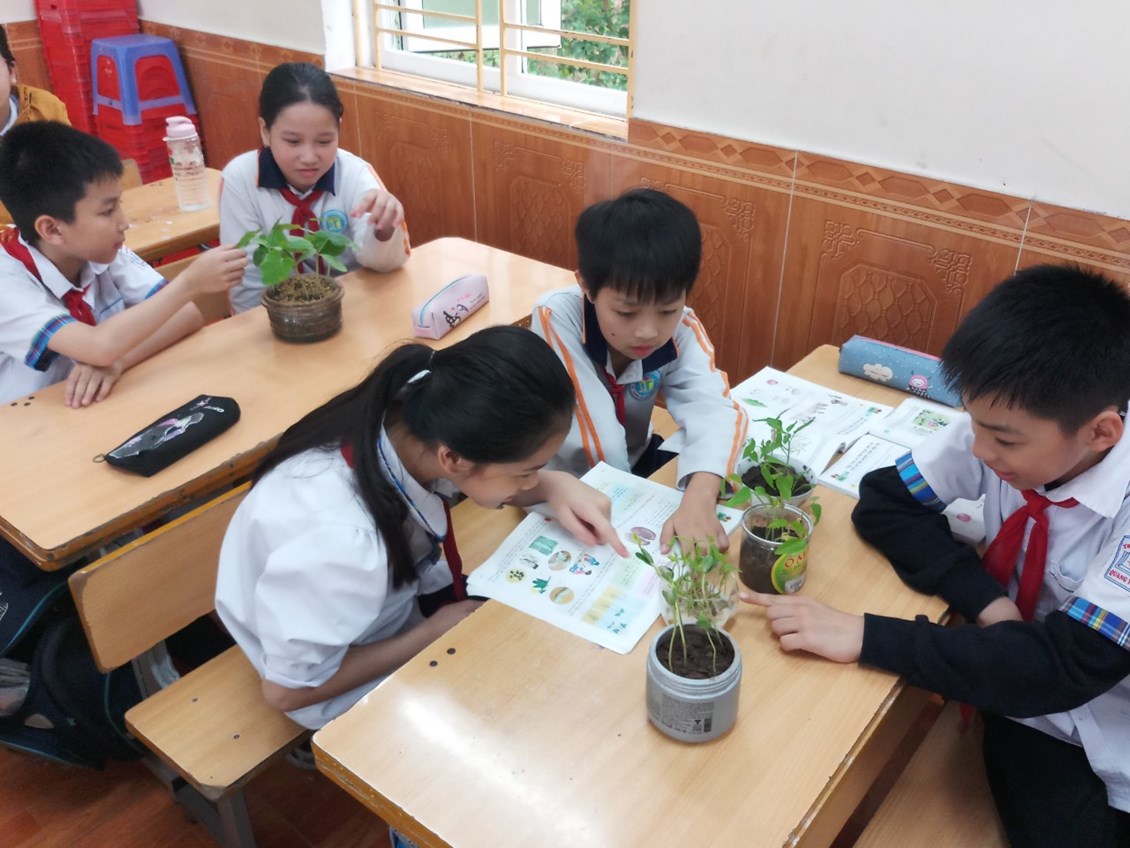 Tham quan đột xuất tiết học Khoa học lớp 5 của cô giáo Lê Hải Thuần trong bài “Cây con mọc lên từ hạt”. Thật sự ngạc nhiên khi thấy sự chuẩn bị chu đáo, sự chăm chú, tỉ mỉ của các em học sinh khi quan sát những sản phẩm mà do chính các em làm. Các em dõng dạc mô tả từng quy trình mọc lên của cây con một cách trôi chảy, đầy tự tin. Với những tiết học có trực quan sinh động như này đã giúp các em hiểu bài và thuộc bài ngay trên lớp. Các em càng hiểu rõ và yêu quý môn hơn nhiều hơn.