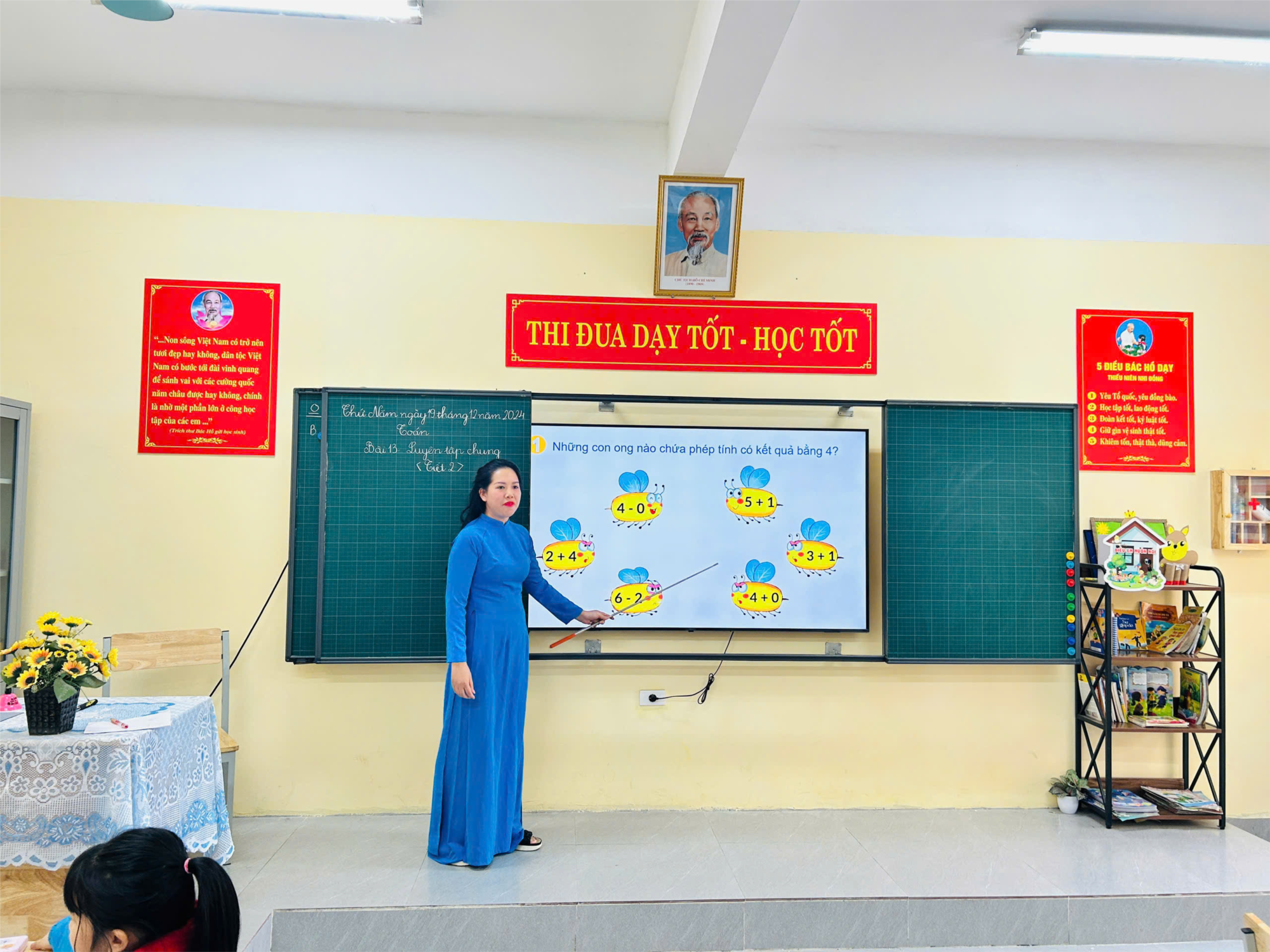 Chiều ngày 19/12/ 2024, trường Tiểu học Quang Trung đã tổ chức chuyên đề chuyên môn: “Đổi mới hình thức tổ chức ôn tập, phát huy năng lực của học sinh trong môn Toán 1, Tiếng Việt 2”. Tham gia buổi sinh hoạt chuyên môn có các đồng chí trong Ban giám hiệu và toàn thể các đồng chí giáo viên trong hội đồng sư phạm nhà trường. Hai tiết dạy do cô giáo Trần Thị Mai Chi và cô Nguyễn Linh Chi cùng tập thể học sinh lớp 1A, 2B thể hiện. Cả hai tiết ôn tập giáo viên đều chuẩn bị bài chu đáo, dạy đúng đặc trưng, ứng dụng tốt công nghệ thông tin, vận dụng linh hoạt các phương pháp, kĩ thuật dạy học tích cực nhằm giúp các em củng cố lại kiến thức đã học một cách chủ động. Học sinh tự tin chia sẻ kết quả làm việc nhóm; hợp tác với bạn trong các trò chơi.