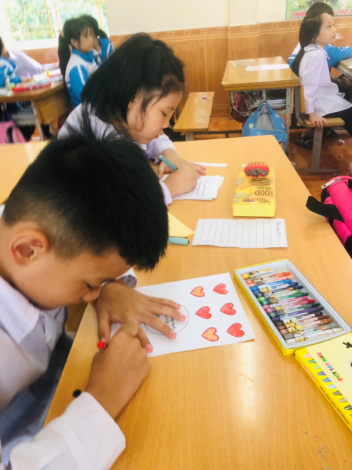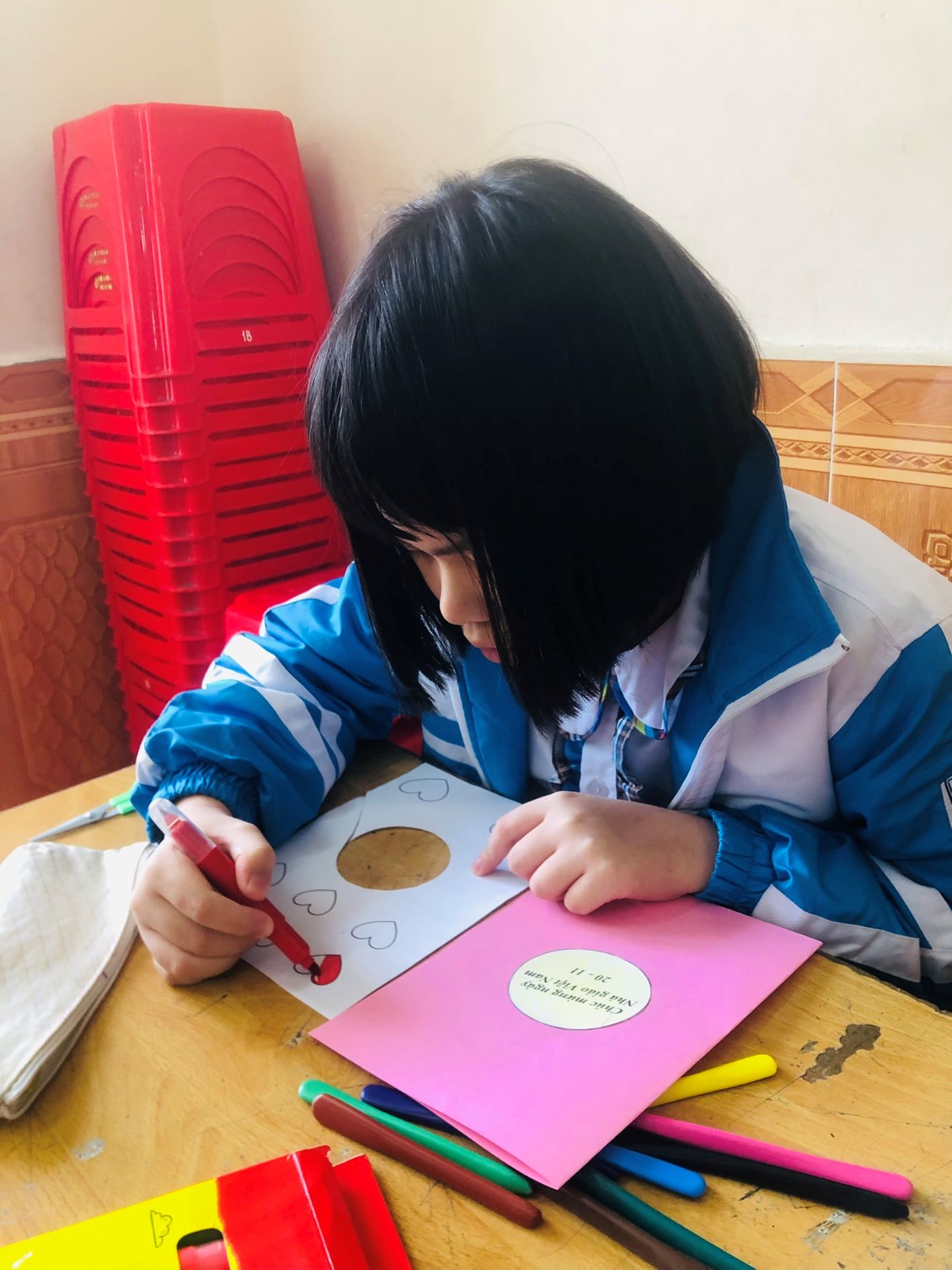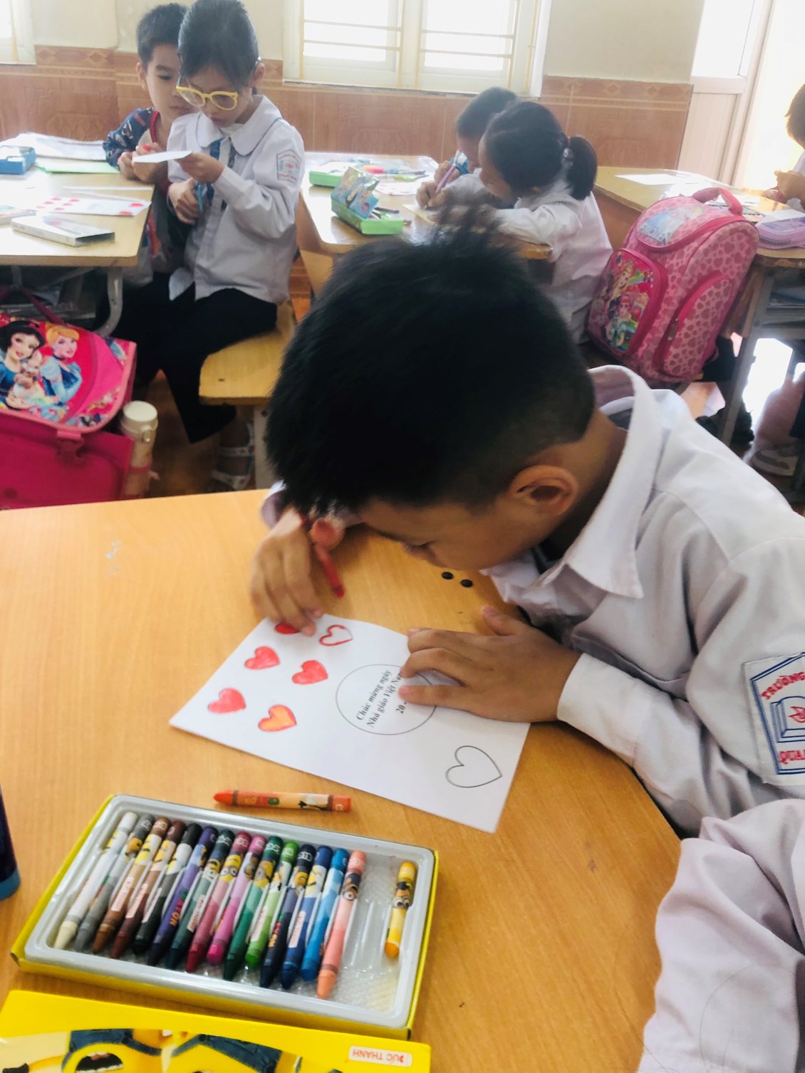 👏👏👏Mấy ngày nay lớp học, sân trường của các bạn trường tiểu học Quang Trung rộn rã tiếng hát và đặc biệt hơn cả có một số nhóm bạn quây quần bên nhau cùng nhau làm những tấm bưu thiếp để tặng thầy cô. Từ các em lớp 1, lớp 2 cho đến các anh chị khối 3,4,5 đều ra sức trổ tài cắt, dán, viết….