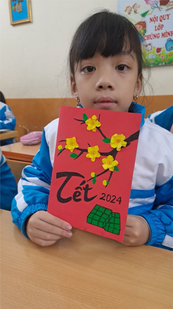 Hòa chung không khí đón Tết các bạn học sinh khối 2 trường Tiểu học Quang Trung đã có buổi trải nghiệm thật ý nghĩa. Các bạn được hiểu về ngày Tết Nguyên đán, được tìm hiểu về các hoạt động diễn ra trong ngày Tết. Được tự tay mình tạo ra những tấm thiệp xinh xắn để tặng người thân, tạo ra những tấm thiệp từ đôi bàn tay khéo léo của mình. Nhân dịp năm mới chúc các bạn nhỏ của cô luôn mạnh khỏe, chăm ngoan, học giỏi.