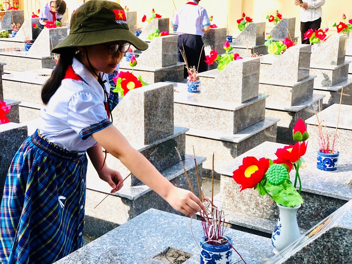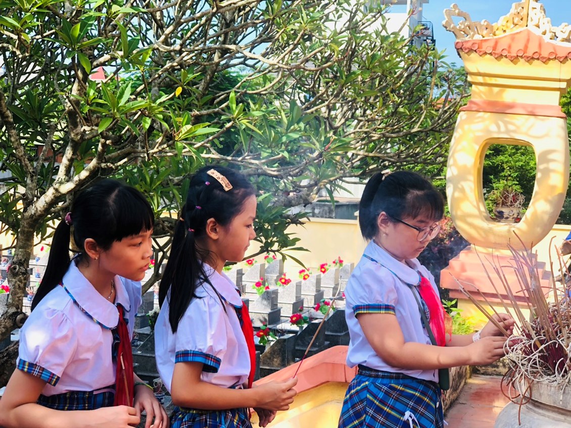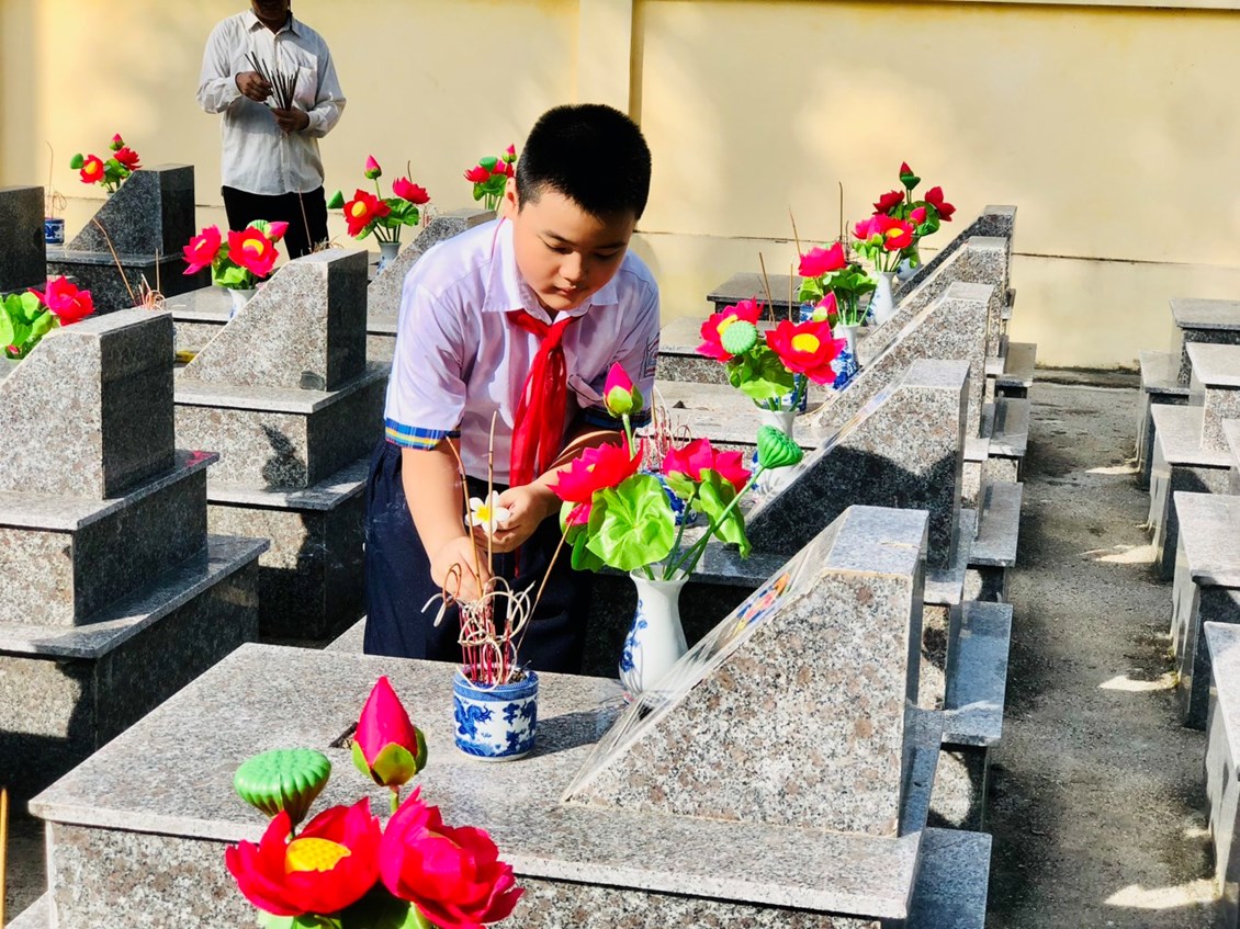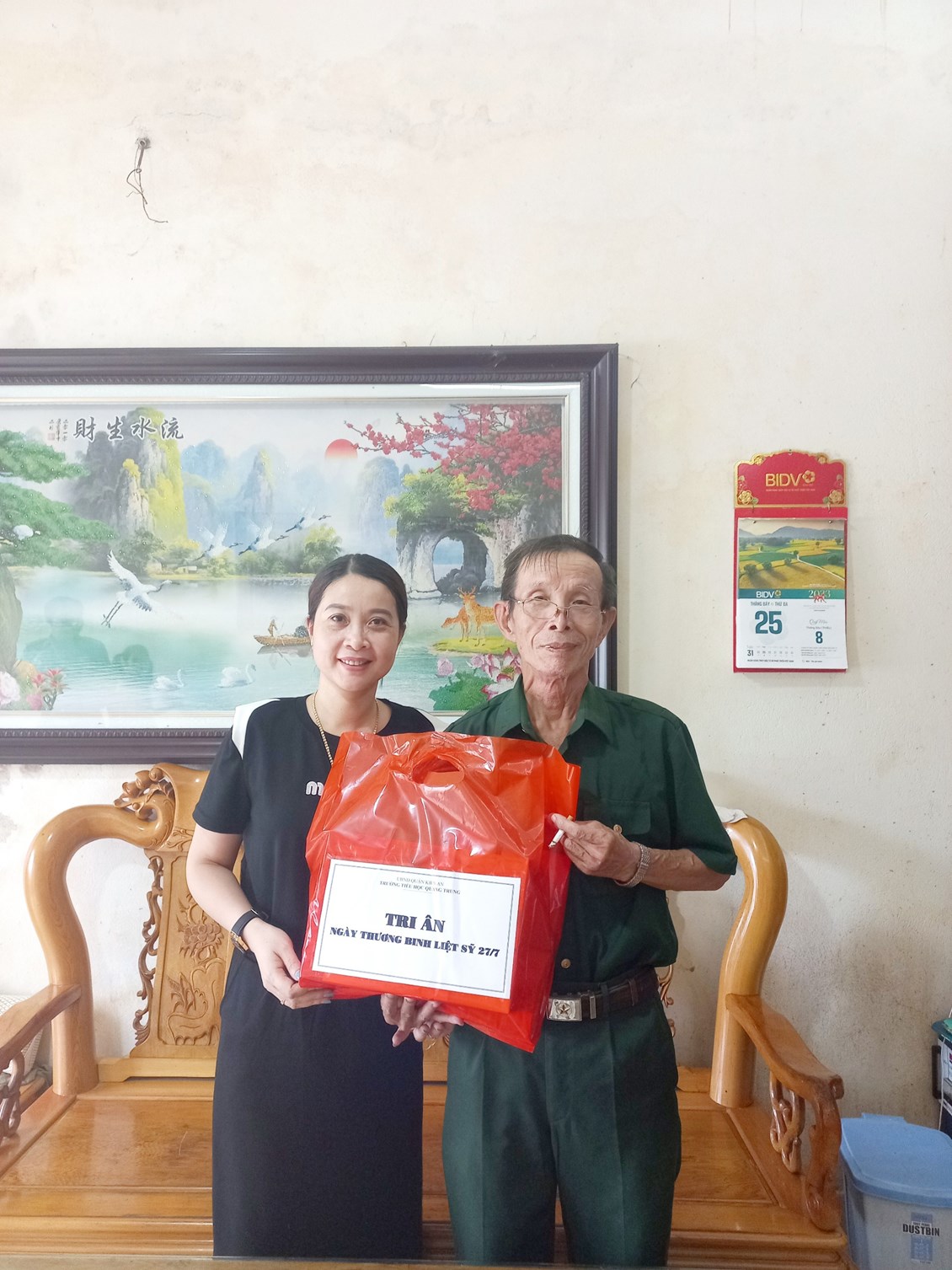 Nhân kỷ niệm 76 năm ngày thương binh liệt sỹ (27/7/1947-27/7/2023), trường tiểu học quang trung cùng đại diện ban giám hiệu, công đoàn, đoàn thanh niên, các em đội viên tổ chức lễ thắp hương tri ân và dâng hương nhằm gởi lời tri ân, lời biết ơn chân thành đến những người mẹ việt nam anh hùng, những liệt sĩ đã ngã xuống vì nền độc lập dân tộc cùng ngày ban giám hiệu, công đoàn trường đã đến thăm và tặng quà cho các gia đình thuộc diện chính sách của CBGVNV.