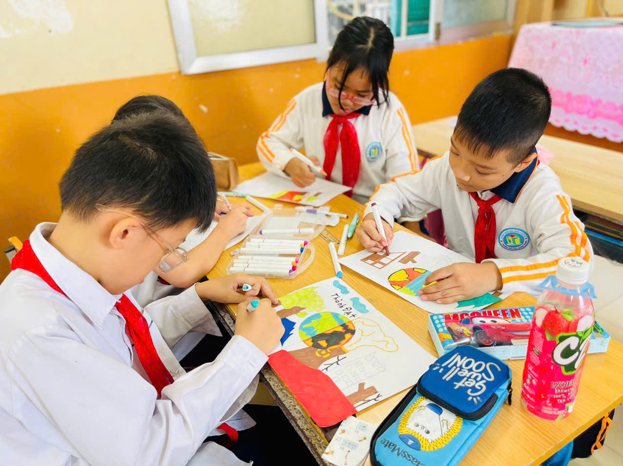 Những bức tranh mang thông điệp Giữ gìn bảo vệ trái đất, bảo vệ môi trường của các em lớp 4B sẽ được lan toả nhân rộng khắp trong toàn Liên đội.