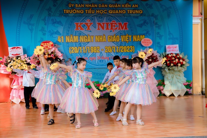 Hòa chung với khí thế tưng bừng của cả nước chào đón kỷ niệm 41 năm Ngày Nhà giáo Việt Nam (20/11/1982 - 20/11/2023). Sáng ngày 20/11/2023, Trường Tiểu học Quang Trung tổ chức Lễ kỷ niệm 41 năm Ngày Nhà giáo Việt Nam (20/11/1982 – 20/11/2023). Buổi lễ được diễn ra trong không khí ấm cúng, gần gũi giữa thầy cô và các em học sinh.