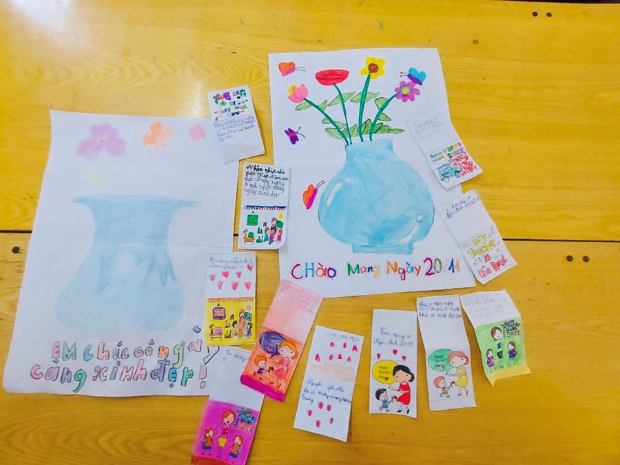 Hoạt động trải nghiệm làm bưu thiếp Chào mừng ngày nhà giáo Việt Nam 20/11