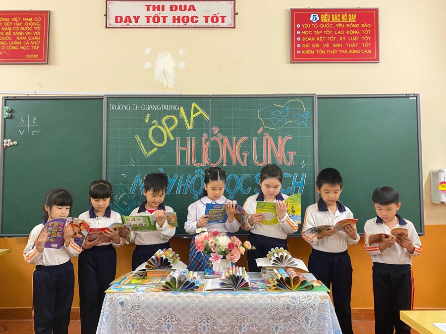 Cuộc thi ảnh hưởng ứng "Ngày sách Việt Nam 21/4" chính thức khởi động tại Liên đội Trường TH Quang Trung. Những bức ảnh vô cùng đáng yêu, ngộ nghĩnh trong giờ đọc sách của các bạn học sinh khối 1 sẽ mở màn cho cuộc thi ảnh năm nay.