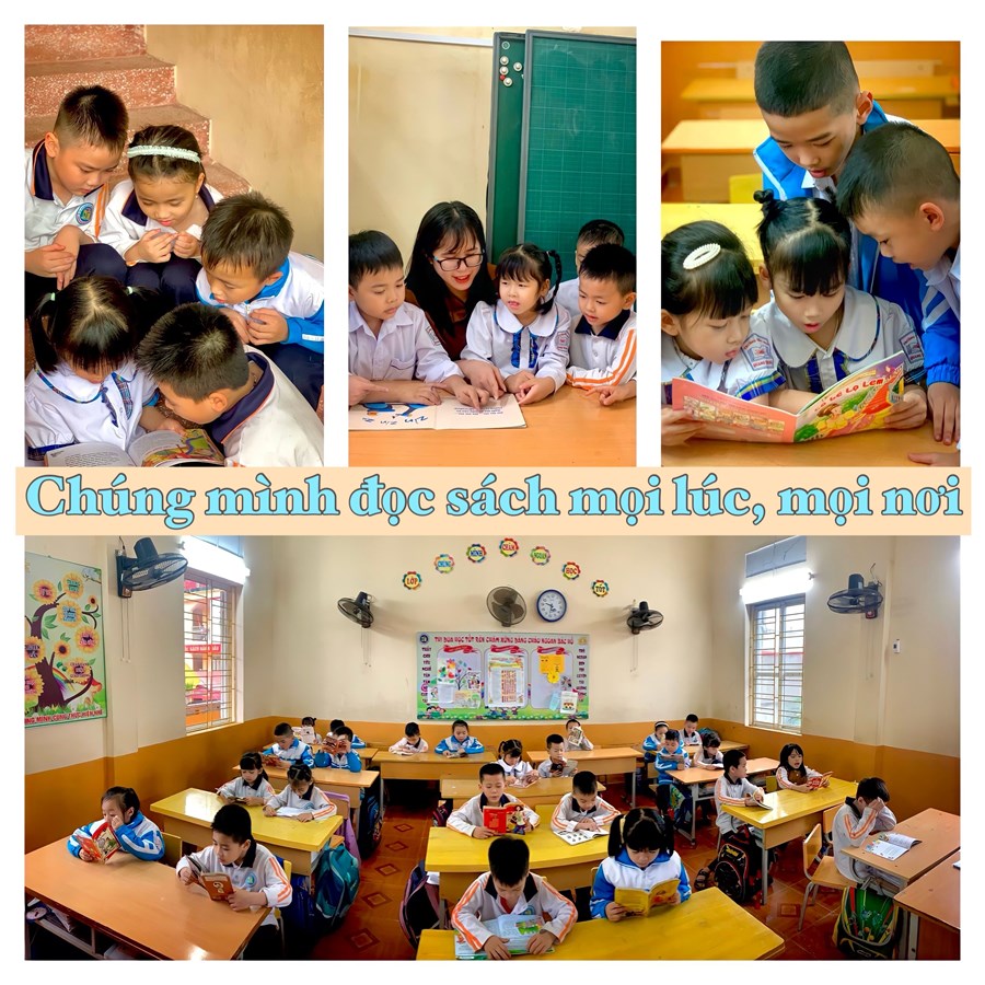 Dưới đây là những bức ảnh ghi lại hoạt động trong giờ đọc sách của các em học sinh